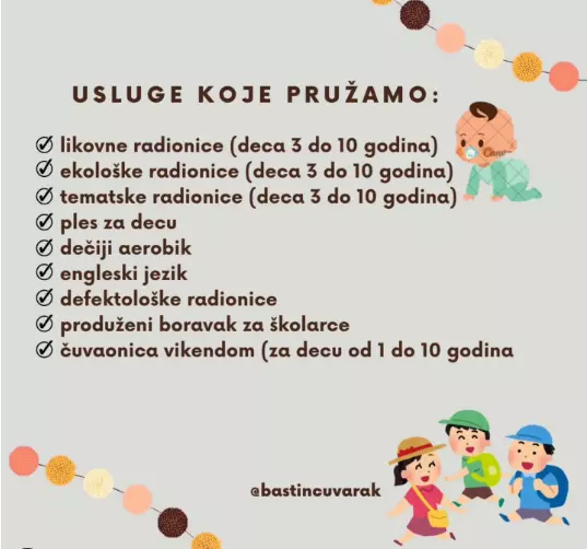 U okviru našeg edukativnog centra organizujemo dečije animacije i nudimo priliku da se deca opuste, istražuju, razvijaju i nauče nove stvari na zabavan i uzbudljiv način. Nalazimo se u Bajinoj Bašti.