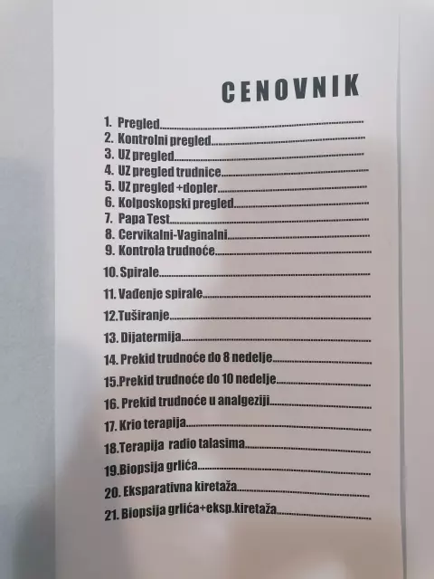 Pružamo usluge iz oblasti kolposkopije, a vršimo i papa test. Osnovani smo sa ciljem da pacijentima pružimo kvalitetne usluge po pristupačnim cenama.