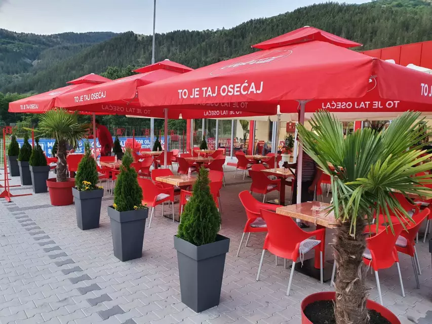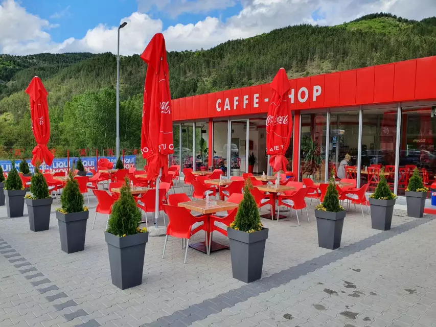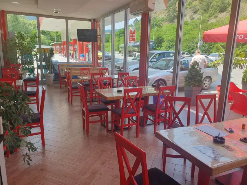 U ponudi imamo brzu hranu i veliki izbor pica, a u letnjoj bašti možete uživati dok odmarate od puta.