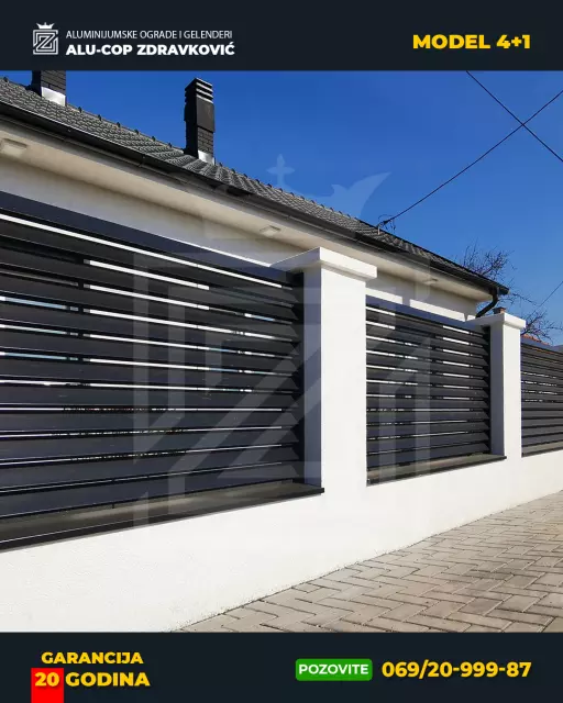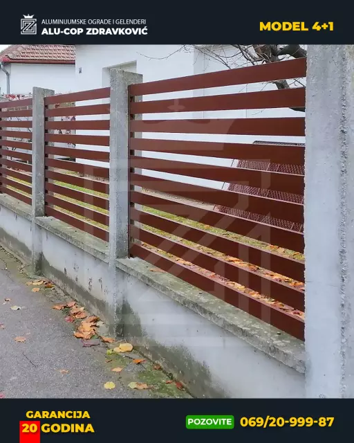 U ponudi imamo varene plastificirane ograde, kao i ograde od eloksiranog aluminijuma. U eloksiranom modelu imamo dosta vrsta drvo dekora kao i celu paletu RAL boja.