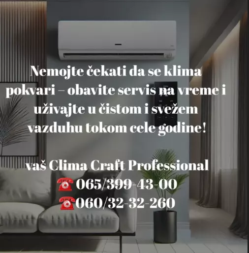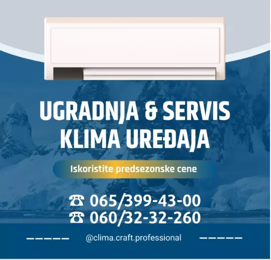 CLIMA CRAFT PROFESSIONAL je firma specijalizovana za sve vrste klima uređaja. Bavimo se kako ugradnjom, tako i servisom istih. Radimo na području čitavog Beograda i izlazimo na teren po potrebi klijenata. Takođe radimo punjenje auto klima za sve naše klijente.