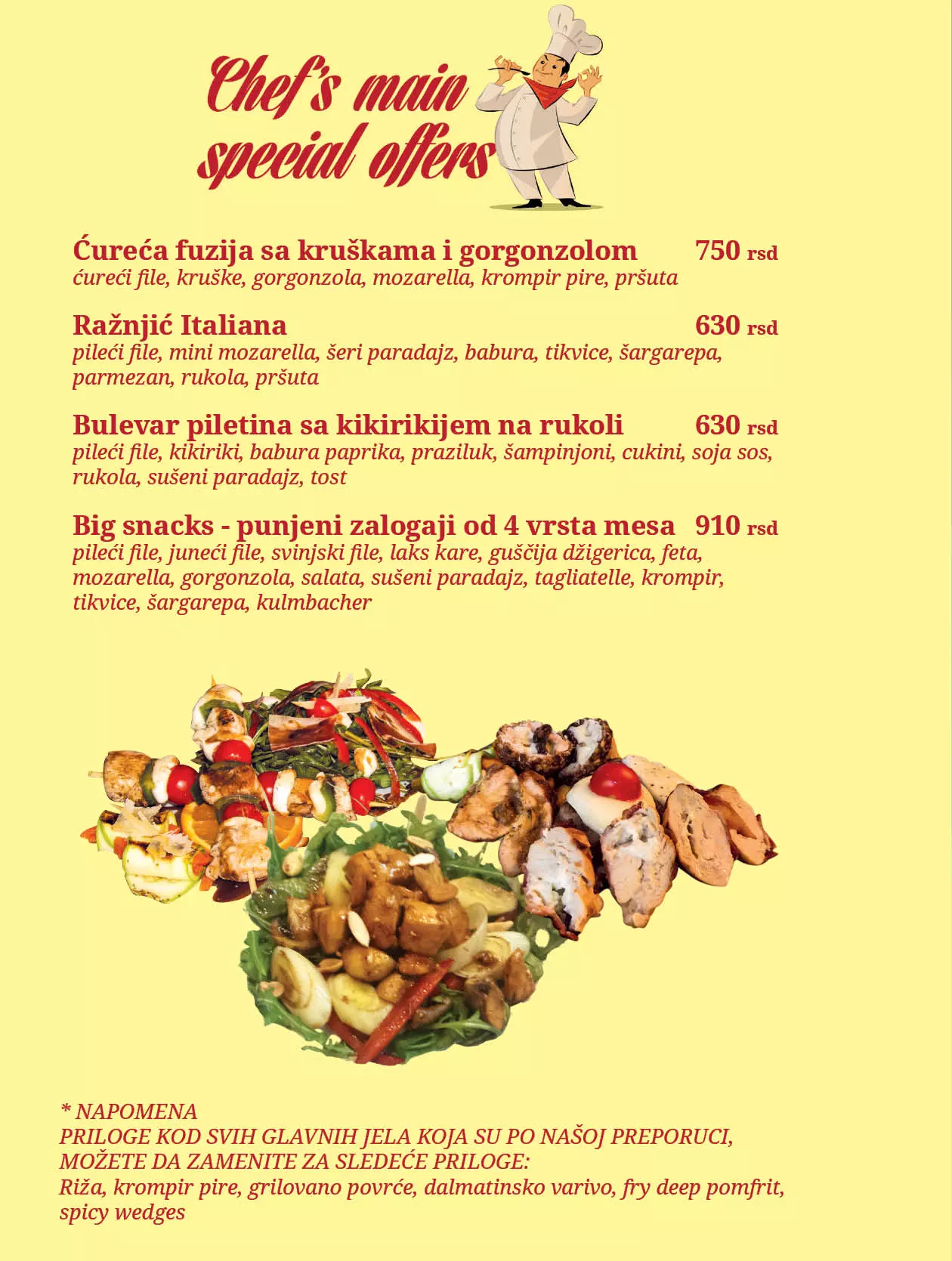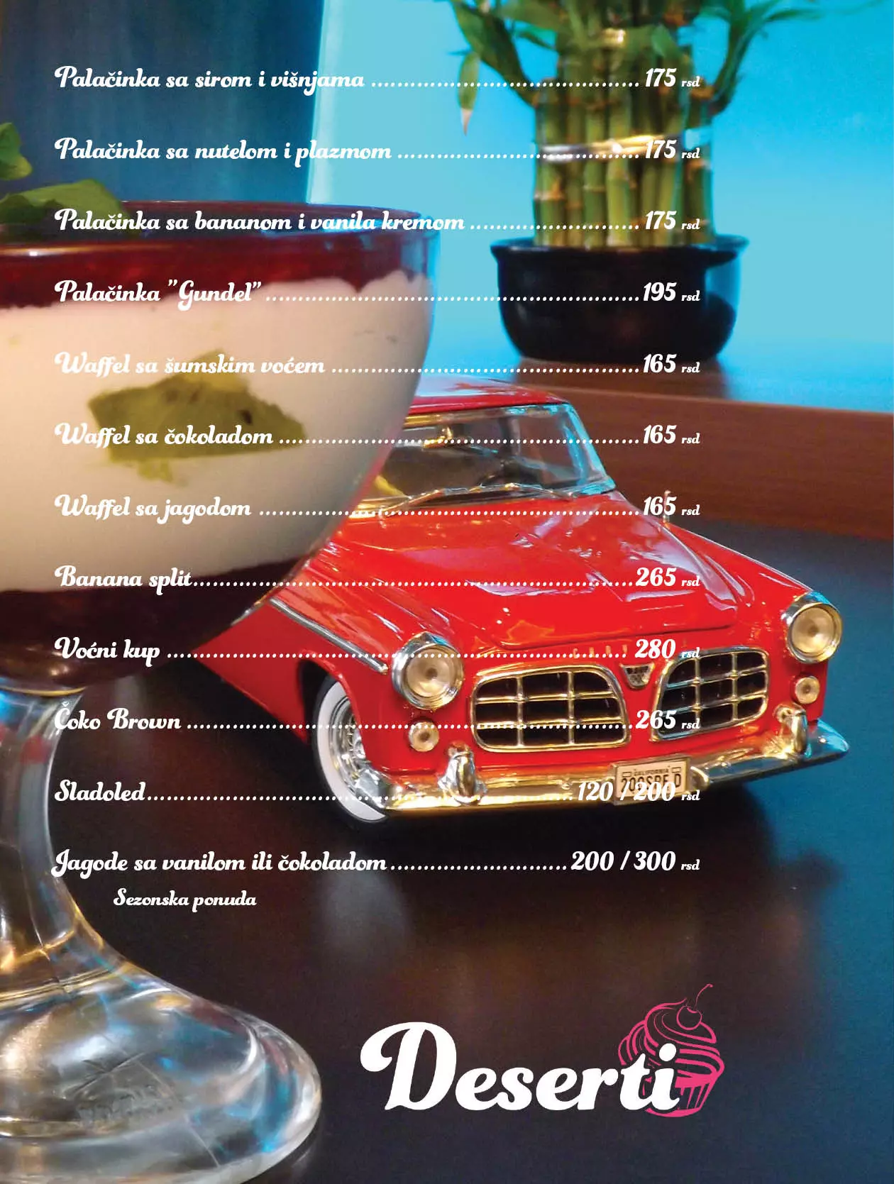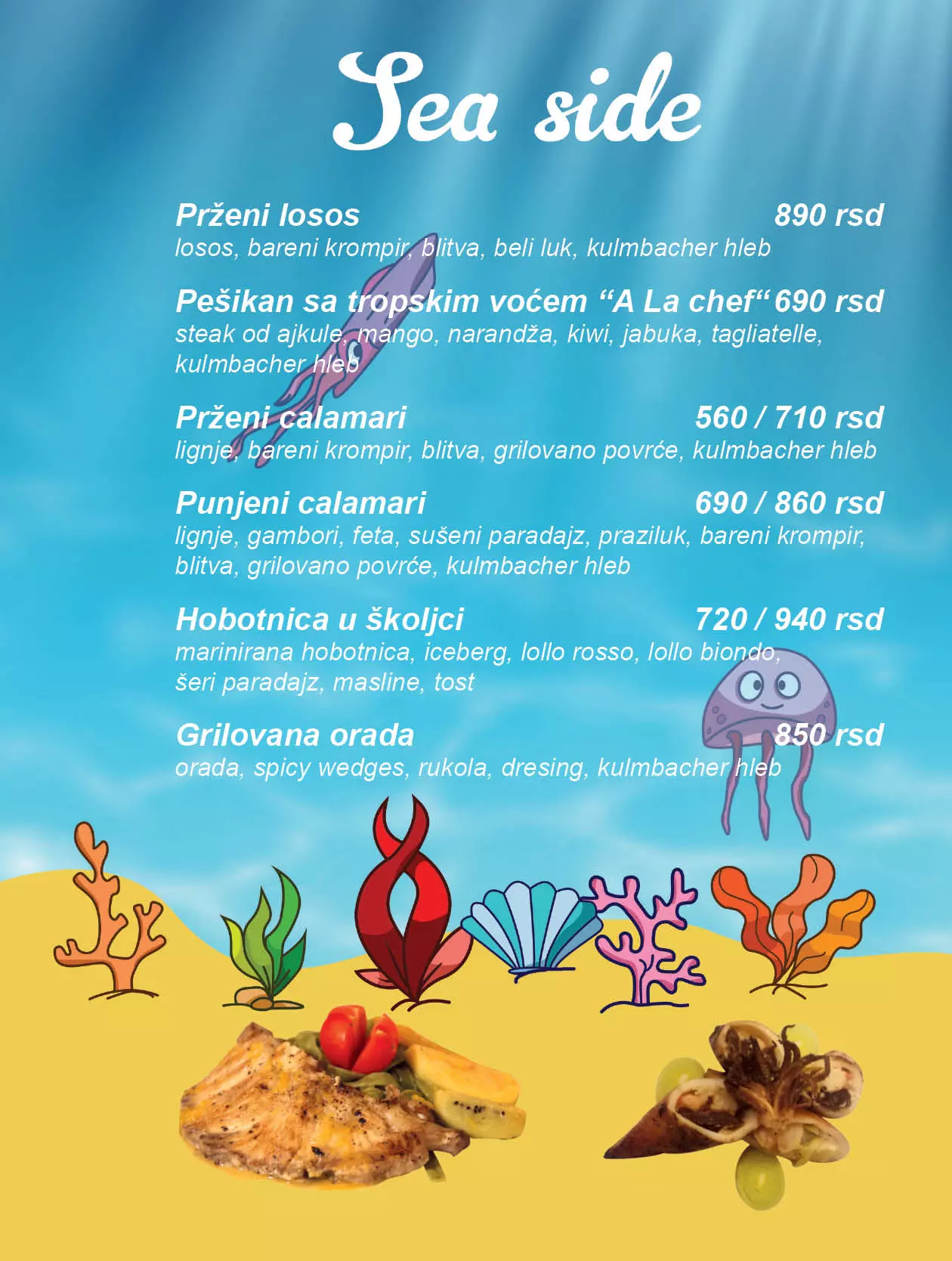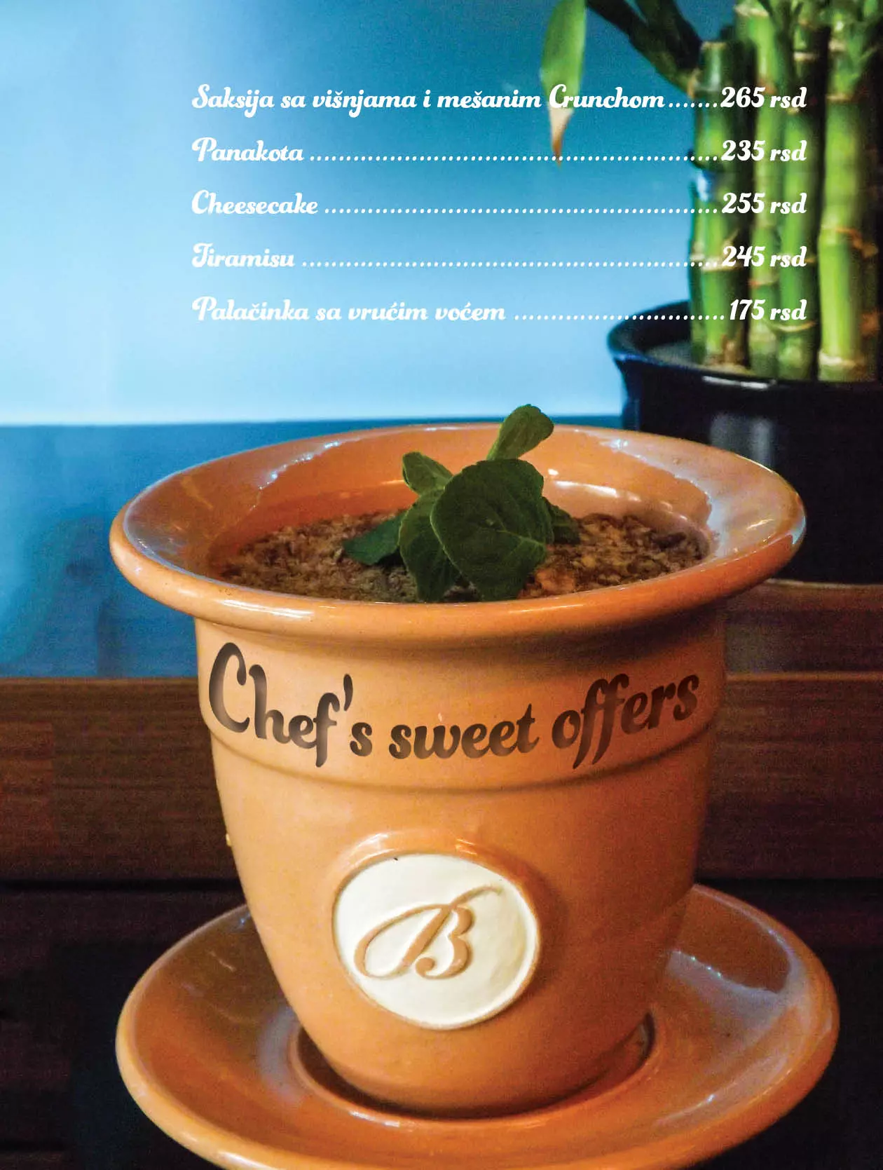Bulevar nudi bogatu lepezu sadržaja svojim gostima. Od jutarnje kafe uz novine, bogat jelovnik sa raznim specijalitetima, pa sve do zabave u večernjim časovima i često uz muziku uživo. Osim klasične ponude alkoholnih i bezalkoholnih pića, nudimo Vam: