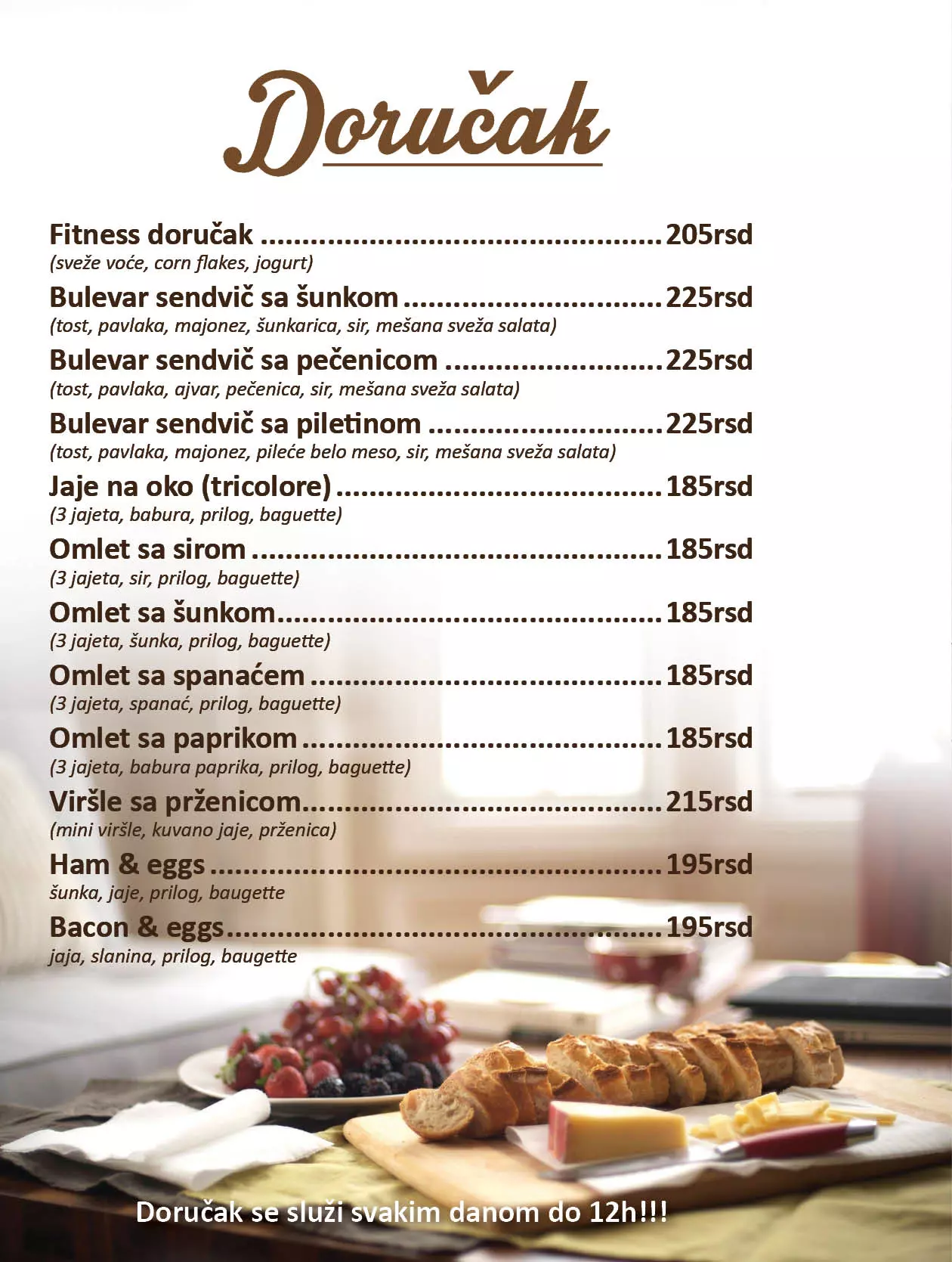 Dnevni ugođaj upotpunili smo odabranim repertoarom muzike, besplatnim Wi-Fi internetom te dnevnom štampom koju gosti imaju na raspolaganju.