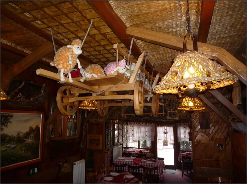 U toplom ambijentu tipičnog etno restorana, kompletno urađenom u drvetu, sa atmosferom koja liči onoj u tradicionalnim krčmama na Zlatiboru ili Tari može se uživati u vrhunskim specijalitetima od svih vrsta ovčjeg mesa.